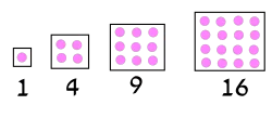 Les carrés parfaits forment une suite infinie de nombres entiers (suite A000290 de l'OEIS) de densité nulle, dont les différences entre termes consécutifs forment la suite des entiers impairs, et dont la série associée est définie par les sommes partielles :