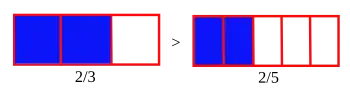 Stella Baruk propose de diminuer ces difficultés en prenant soin de parler de fractions équivalentes quand elles désignent le même nombre rationnel et d'écriture fractionnelle quand le numérateur ou le dénominateur n'est pas un nombre entier, et que par conséquent, il ne s'agit pas d'une fraction[8].Modélisation d'une fraction