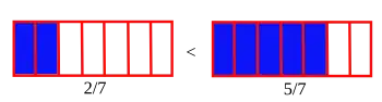 - Le dénominateur 7 est le même pour chaque fraction.