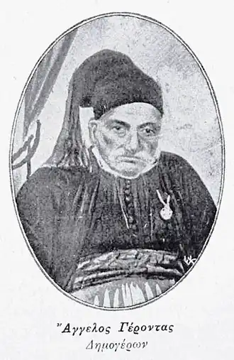 - (el) Cet article est partiellement ou en totalité issu de l’article de Wikipédia en grec moderne intitulé « Άγγελος Γέροντας » (voir la liste des auteurs).
