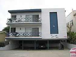 Les appartements dingbat, omniprésents à Los Angeles, en Californie, ont été construits entre 1945 et les années 1960, alliant un style puriste à l’influence de Googie. L'architecte, Francis Ventre, a inventé le terme « dingbat » pour désigner ces structures simples construites rapidement en stuc et en bâti[9]. Ces structures avaient souvent un seul ornement extérieur en forme d'étoile, de boomerang ou de motif de rectangles.