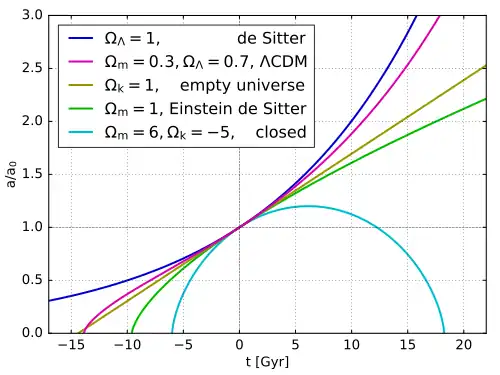 - ↑ (en) Lecture 7 Dynamics of the Universe Solutions to the Friedmann Equation for R(t) [PDF] - p. 5, Université de St Andrews (consulté le ).