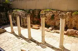 - ↑ En 333, le pèlerin anonyme de Bordeaux écrit « À l'intérieur, dans l'enceinte de Sion, se voit le lieu où David eut son palais et où existèrent sept synagogues dont une seule a subsisté : les autres sont labourés et ensemencés » (Itin. Burd. 592-593) cité par François Blanchetière, op. cit., p. 126.