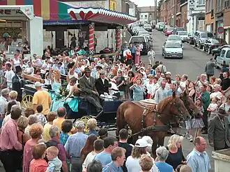 Notons aussi de nombreuses fêtes typiques des différents quartiers d'Écaussinnes telles que les ducasses du Quartier et des Marchous, le carnaval (premier week-end suivant Pâques) avec les Marchous[29], les Scaussinoûs, les Cayoteux[30] et les Nwars Chabots et les Rencontres européennes entre jeunes.