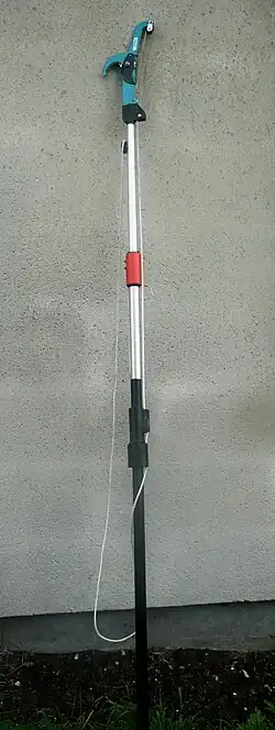 À l'origine, la perche était en bois, d'un seul tenant. De nos jours, on trouve des perches télescopiques en matériaux légers (tubes d'aluminium ou de fibres de carbone) permettant d'intervenir à des hauteurs pouvant atteindre facilement plus d'une dizaine de mètres. La tête de l'échenilloir recevant la cordelette peut être équipée d'un système de poulies (simple ou multiple) qui multiplie l'effort exercé au niveau du bras coupant de l'outil pour faciliter l'action tranchante de la cisaille.