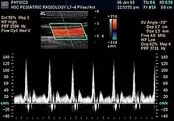 Toutefois, comme pour toute exploration ultrasonore fœtale, l'échographie Doppler doit être réalisée avec les réglages appropriés tenant compte de la puissance acoustique émise afin d'éviter le risque de lésions fœtales potentielles[6]. Les impacts d'une utilisation très prolongée sont méconnus.