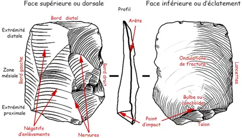 Les éclats fins et allongés, produits en série, sont appelés lames ou lamelles en fonction de leurs dimensions.