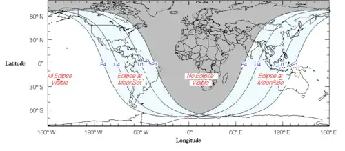 Cette éclipse lunaire, se produisant pendant la « pleine lune des fraises » (Strawberry full moon en anglais), c'est-à-dire la pleine lune de juin[1], était complètement visible sur l'Australie, montante sur l'Asie orientale et descendante sur l'ouest de l'Amérique du Nord. La Nouvelle-Angleterre et l'est du Canada ont manqué intégralement l'éclipse étant donné que l'évènement a commencé après le lever du Soleil dans ces régions. L'éclipse fut visible dans le centre des États-Unis.