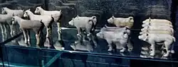 Les ateliers gouvernementaux des Han fabriquent des objets de luxe, des objets de la vie quotidienne et même des articles funéraires connus sous le terme de Mingqi (明器/冥器). Ces Mingqi incluent, entre autres, des figurines en céramique et des briques ou des tuiles servant à décorer les murs des tombeaux[78]. Ces ateliers sont sous la tutelle du Petit Trésorier (少府)[79].
