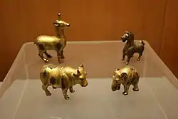 Parmi les objets ordinaires en bronze, on trouve des objets à usage domestique, comme les lampes à huile, les brûleurs d’encens, les tables, les fers à repasser, les poêles et des pots. Les objets en fer servent souvent pour la construction et les travaux agricoles. Cela inclut les socs de charrue, les pioches, les piques, les pelles, les houes, les faucilles, les haches, les herminettes, les marteaux, les burins, les couteaux, les scies, les alènes et les clous[104]. Le fer sert aussi à faire des épées, des hallebardes, des pointes de flèches et des armures d'écaille pour les militaires[105].