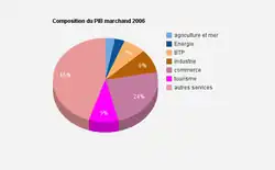 | PIB par secteur | agriculture : 3,5 % (2005)[2] industrie : 20,4 % (2005)[2] services : 76,1 % (2005)[2] |
