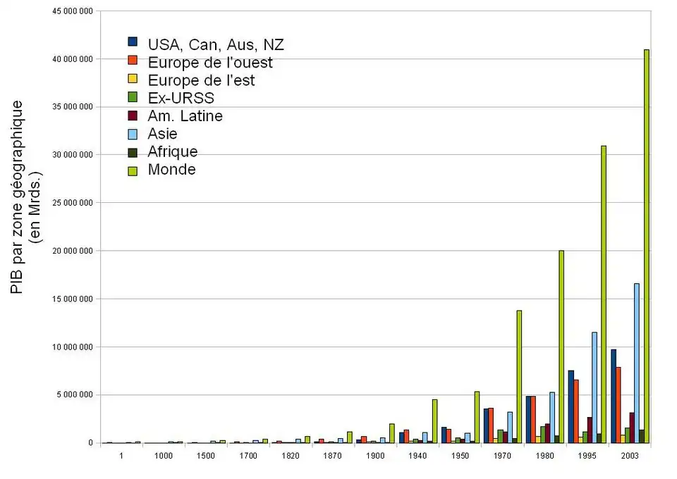 Sur la période 1980 à 2006, le PIB mondial est multiplié par 3. En Asie, par 4 (Inde et république populaire de Chine par 3), en Europe par 2.