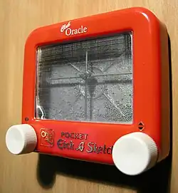 En interne, chaque bouton actionne une tige qui est la coordonnée d'un stylet et qui le déplace contre la face interne de l'écran. Cette face interne, transparente, est recouverte de poudre d'aluminium opaque qui y adhère par électricité statique. Le déplacement du stylet gratte la poudre, dont l'absence laisse voir le fond noir du jouet et donne l'impression de laisser une marque[6].