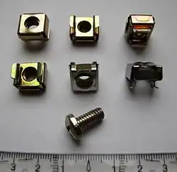 C'est un écrou épaulé, borgne et cylindrique (il ne peut donc pas être manipulé comme un écrou normal), dont le côté fermé peut être manipulé avec un tournevis grâce à une fente, ou avec une clé Allen grâce à un creux hexagonal.