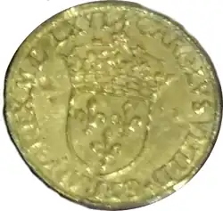 L'écu à la couronne, ainsi qu'un demi-écu à la couronne du même type fut également fabriqué sous le roi Charles VII le Victorieux. Cette monnaie d'or pesait 3,47 grammes.