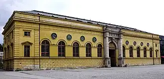 Le bâtiment avec son portail en arcade monumental, couronné de bustes de Castor et Pollux, est considéré comme l'une des premières œuvres les plus abouties de Klenze. Les huit hauts-reliefs ronds en bronze avec des têtes de cheval, entre les écoinçons des fenêtres, et les reliefs en pierre La bataille des centaures et des Lapithes sont des œuvres de Johann Martin von Wagner.