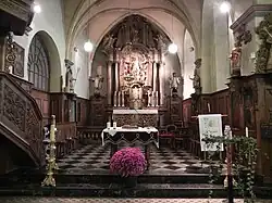 Le chœur est flanqué, à gauche, de la Chapelle des Seigneurs qui, à l’origine, ne communiquait pas avec le reste de l’édifice. Dans le prolongement du chœur, se trouve une sacristie dont les dimensions sont plus réduites que celui-ci.