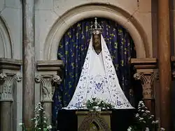 À l'origine, les vêtements sculptés de la Vierge portaient une polychromie romane et son visage une couleur bistre clair à peine plus sombre que le teint naturel. Au XVIe ou au XVIIe siècle, la statue fut peinte en noir, pour une raison inconnue. En 1945, cette couche de peinture fut retirée, révélant la polychromie d'origine. Cependant, une légère teinte noire fut appliquée sur le visage seul, pour ne pas rompre avec la tradition[23].
