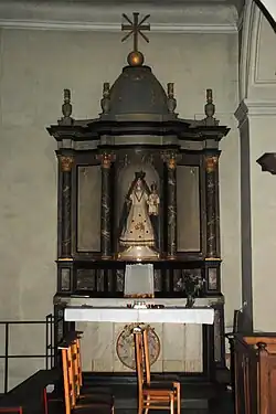 Sa niche centrale abritait jadis une vierge à l'enfant du type « Sedes Sapientiae » : disparue depuis la Révolution française, cette Vierge a été exposée exceptionnellement en l'église lors des Journées du patrimoine 2005.