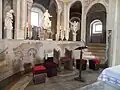 Un inventaire de 1750 note que le retable principal et le chœur ont été décorés par Domenico Riccio. La Tribune a été décorée de fresques par Bernardo Muttoni. Certaines figures au-dessus du maître-autel ont été peintes par Sante Prunati ; cependant, les fresques du plafond et de la coupole sont principalement dues à Brusasorzi[5]. Il a également peint une Adoration des Mages pour le premier autel à droite. Une lunette ornée de fresques a été réalisée par Giovanni Battista dal Moro. La Chapelle des Innocents possédait un retable représentant le Massacre des Innocents de Pasquale Ottino et le Martyre de 40 martyrs d'Alessandro Turchi. La chapelle possédait également des fresques de Marcantonio Bassetti, ainsi qu'une Annonciation et des fresques de San Carlo et St Francis d'Ottino[5].