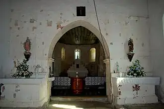 L'édifice possède une seule nef qui se termine par un sanctuaire en hémicycle couvert en demi-coupole. À l'intérieur, la nef à murs nus, est couverte d'une charpente ouvert et un « banc des pauvres » occupe la base des murs.