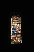 Il y a également trois vitraux modernes, qui datent du XXe siècle. Ils sont l’œuvre de Raymond Mirande[3], poète, philosophe, émailleur, vitrailliste et mosaïste.