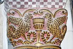 Quatre autres dragons, de type aviaire, s'abreuvent à trois calices. Leurs queues sont mutuellement enroulées l'une dans l'autre et, entre leurs pattes, il y a des serpents.