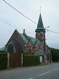 L'église a été reconstruite en brique selon un plan basilical traditionnel, son toit est couvert de tuiles en cuivre. Son aspect extérieur a été particulièrement soigné par l'utilisation de briques rouges et jaunes agencées en damier ou en mosaïque. Le plan et la décoration extérieure et intérieure s'inspirent du style gothique. La décoration intérieure est due pour les vitraux à Gérard Ansart et à l'atelier Darquet. Ils représentent dans la nef, les stations du chemin de croix, dans le chœur la Crucifixion et à la tribune le Christ en majesté. Le mobilier a été dessiné par Pierre Ansart architecte-décorateur amiénois et père de Gérard Ansart. Pierre Ansart est également l'auteur de l'autel décorée de sgraffite.