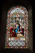 En entrant, côté droit, on remarque la verrière ayant pour sujet « Jeanne d’Arc écoutant ses voix » d’une remarquable exécution. C’est un don de M. et MM Armand Bourgeois–Coucin et de leurs trois enfants, en souvenir de leurs noces d’argent, avec la date . Dans la chapelle de la Vierge, même côté, sont deux verrières représentant l’une Jésus et les docteurs de la loi, l’autre les noces de Cana, sans autre indication.