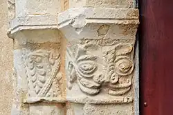 La façade occidentale a pour seul ornement les chapiteaux à feuillages et à engoulant de la porte. Cette décoration est d'inspiration saintongeaise.