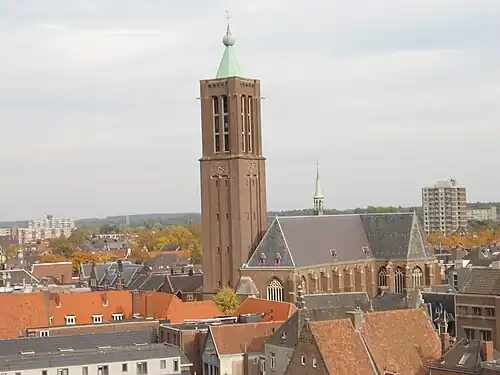 Une première église romane remplace, vers l'an 1000, un édifice précédent en bois. Elle est à son tour remplacée en 1410 par une église-halle gothique à trois nefs consacrée en 1430 et qui existe encore aujourd'hui. Elle est dotée d'un clocher de 90 mètres en 1480, mais un tremblement de terre la détruit en 1532. Dans une reconstruction en 1776 il est remplacé par un clocher de 49 mètres, avec un toit en oignon. En 1879, le clocher est modifié par Pierre Cuypers qui remplace son côté baroque par un étage supplémentaire, un toit en pointe et quatre pinacles de style néo-gothique. Pendant la seconde Guerre mondiale, l'église est gravement endommagée, le clocher de Cuypers s'effondre en 1945. En 1953, il est remplacé par le clocher actuel, plus sobre.