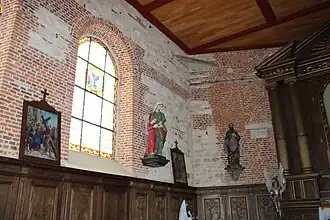 Alors que les murs extérieurs sont entièrement en brique, l'intérieur montre une alternance de pierre calcaire et de briques.