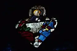 - Verrière no 7 (pan oblique du collatéral nord), à une lancette : Pietà avec saint Jean et un ange.