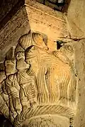 - Ce projet, fomenté par la peur d'Hérode, a été symbolisé sur le tailloir du chapiteau : on voit trois corps sans tête qui gisent entre les rinceaux. Le chapiteau suivant est la réalisation du massacre.