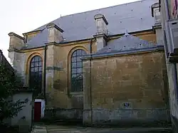 Dans le prolongement de la façade sud est construite la sacristie. De plan carré, la sacristie a environ la même surface qu'une travée de collatéral. Son toit était à l'origine à trois versants comme on le voit grâce aux traces sur ce côté. Ces traces montrent également qu'il y avait sur ce pan de mur une baie, sans doute rebouchée pour la construction de la sacristie. Cette dernière, d'une grande simplicité, est dotée de deux fenêtres rectangulaires dans la façade sud et d'une autre dans la façade est, un peu plus grande. Mais si l'on observe le cadastre de 1848, on remarque que la sacristie était plus grande et qu'elle rejoignait presque le rempart.