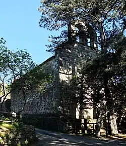 L'édifice se trouve au cœur du massif des Albères, un massif montagneux peu élevé mais escarpé constituant la partie la plus orientales des Pyrénées et marquant la frontière entre l'Espagne et la France. Il a été construit sur un replat surplombant un torrent, en contrebas d'un col nommé coll Forcat (« col fourchu » en catalan). L'église se trouve sur le territoire français, dans la commune de L'Albère, l'Espagne se trouvant de l'autre côté du col.