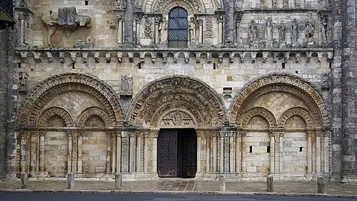 Cette façade est, avec celle de la collégiale Notre-Dame-la-Grande de Poitiers, une des façades d'église de l'époque romane du Poitou les plus riches.