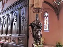 Les stalles et lambris ornant le chœur de l'église proviennent de l'abbaye de Neubourg. Ils ont été acquis après la Révolution par les habitants de la paroisse. Ils comportent deux styles différents. Le premier ensemble qui est le plus ancien sont des lambris avec stalles de style Louis XV, alors que le second ensemble est constitué de lambris de style Louis XVI.