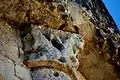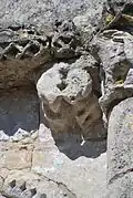 Le chapiteau A est très érodé et il n'est pas possible de donner une interprétation, autre qu'il s'agit d'animaux, probablement ailés. Le deuxième , mieux conservé, porte un décor de cercles enlacées.