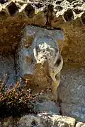 - Il existe, de chaque côté et à hauteur du sol, des pierres plates cannelées qui suggèrent que cette façade a été décorée à l'origine en 'style byzantin' et avant la construction romane il y avait une église antérieure assujettie à l'une des règles orientales qui avaient cours en Gaule : celle de Basile, de Pacôme ou de Cassien.