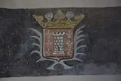 Elle montre aussi de remarquables peintures féodales et religieuses plus anciennes, datées du début du XIVe siècle d'après A. Courtille[5] et redécouvertes récemment. Là encore, l'histoire réapparaît avec l'héraldique et la représentation artistique.