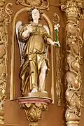À l'entrée se trouve un porche en forme rectangulaire. L’église n'a qu'une nef avec deux chapelles latérales dédiées au Sacré-Cœur et à la Vierge Marie. Un grand retable en bois doré couvre tout le fond du sanctuaire. Il se compose d'une boiserie peinte aux ornements divers. De chaque côté se trouvent des statues qui produisent un certain effet : saint Pierre et saint Paul, la Vierge Marie et l'ange Gabriel. Quatre colonnes torses, autour desquelles s'enroulent des branches de vigne, complètent l'ensemble. Le retable date peut-être du XVIIe ou XVIIIe, la datation semble difficile.