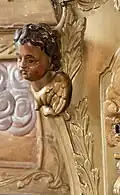 Les portails en bois sculptés dans la masse semblent curieux. La statue de Notre Dame a parcouru les paroisses de la région d'Aire et de Villeneuve de Marsan en en des processions mémorables. Elle a figuré à l'exposition d'Art sacré de Dax en 1955[1].