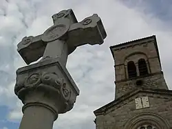 Devant l'église s'élève une croix érigée en 1875. Elle remplace la vielle croix du Hameau de la Place qui est tombée en ruine en 1828. D'autres croix ornent la commune : la croix de l'Olme, placée sur la façade d'une maison en 1828, la croix du puits Sainte-Marguerite remonte de la même époque. Il y en avait aussi au Crêt et à la Charlière qui ont aujourd'hui disparu. Celle de la rue Voltaire date de 1898.