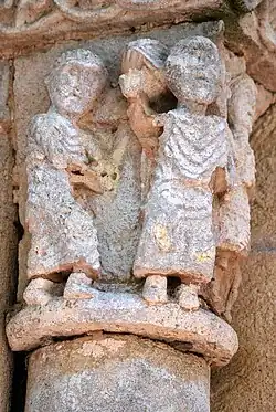 Le chapiteau et sa colonnette ne sont pas romans. Ils n'existaient pas en 1847 (d'après un dessin[4] de Léo Drouyn). Cette contrefaçon néo-romane date de la restauration du XIXe siècle.