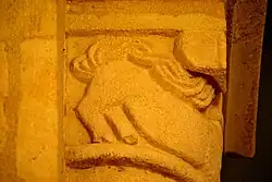 Sur le chapiteau sud de l'arc on voit un couple de lions, affrontés sur la face principal; leurs têtes, détournées vers l'arrière, se trouvent sur les angles de la corbeille. Les lions sont liés par un collier à double boucle autour des cous. Leurs corps allongés s'étendent sur les deux petites faces du chapiteau. Les queues se sont transformées en entrelacs de rinceaux, qui se terminent dans les bouches des lions.