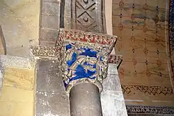 Les corbeilles des piliers de la coupole de la croisée sont de grand format. Une suite de volutes tapisse les tailloirs ; certains angles portent un masque animalier ou humain. Tous les chapiteaux seraient encore en parfait état si l'on n'avait pas martelé 8 des 18 têtes.