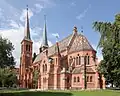 L'église est un édifice néogothique en briques, avec une façade à deux tours. Le bâtiment comporte trois nefs et six travées de forme gothique primitive[1]. La toiture en pente est recouverte de tuiles colorées. Le bâtiment est classé monument historique[2].
