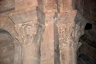 Les trois absides, voûtées en cul-de-four, sont ornées chacune de cinq arcades soutenues par des colonnes aux chapiteaux ornés de motifs végétaux.