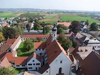 L’église orientée occupe une position centrale dans l’ancien complexe conventuel situé sur une hauteur de la partie inférieure de la vallé de l’Iller. Le bras occidental du promenoir du cloître sépare comme un tunnel le chœur des moines de celui des frères[2].